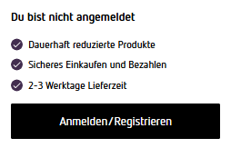 - Klicke oben rechts im Shop auf Anmelden/Registrieren und erstelle dein persönliches Kundenkonto.